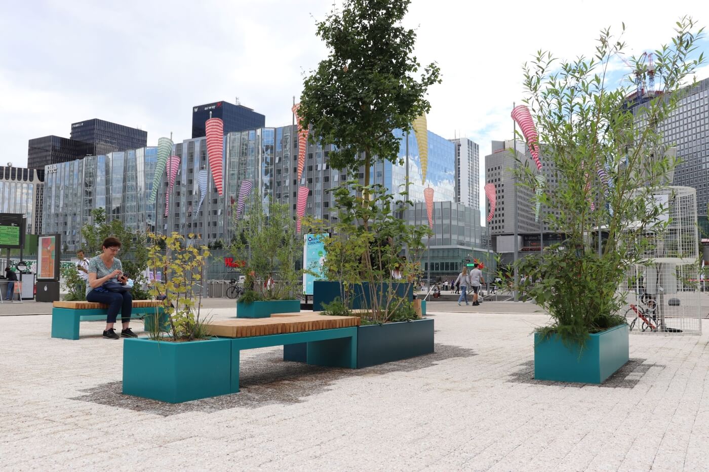 Bocage Urbain Oxygène ist ein Plug'n'Play-System für begrünte Möbel. Die Module sind einfach zu installieren, erfordern keine Tiefbauarbeiten und können innerhalb eines Tages aufgebaut werden.